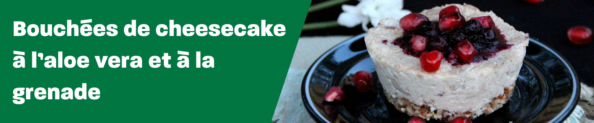 Bouchées de cheesecake à l’aloe vera et à la grenade – une création élégante et rafraîchissante pour clôturer le repas en beauté.Voir la recette ici ou en cliquant sur la photo