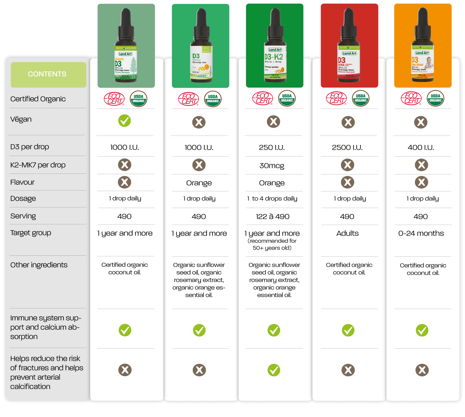 Land Art’s Organic Vitamin D3 1000 IU is a natural, certified organic liquid supplement designed to support the immune system and promote better calcium absorption. Naturally derived from lanolin and blended with organic sunflower oil, it is an essential ally for meeting vitamin D needs, especially during the winter.