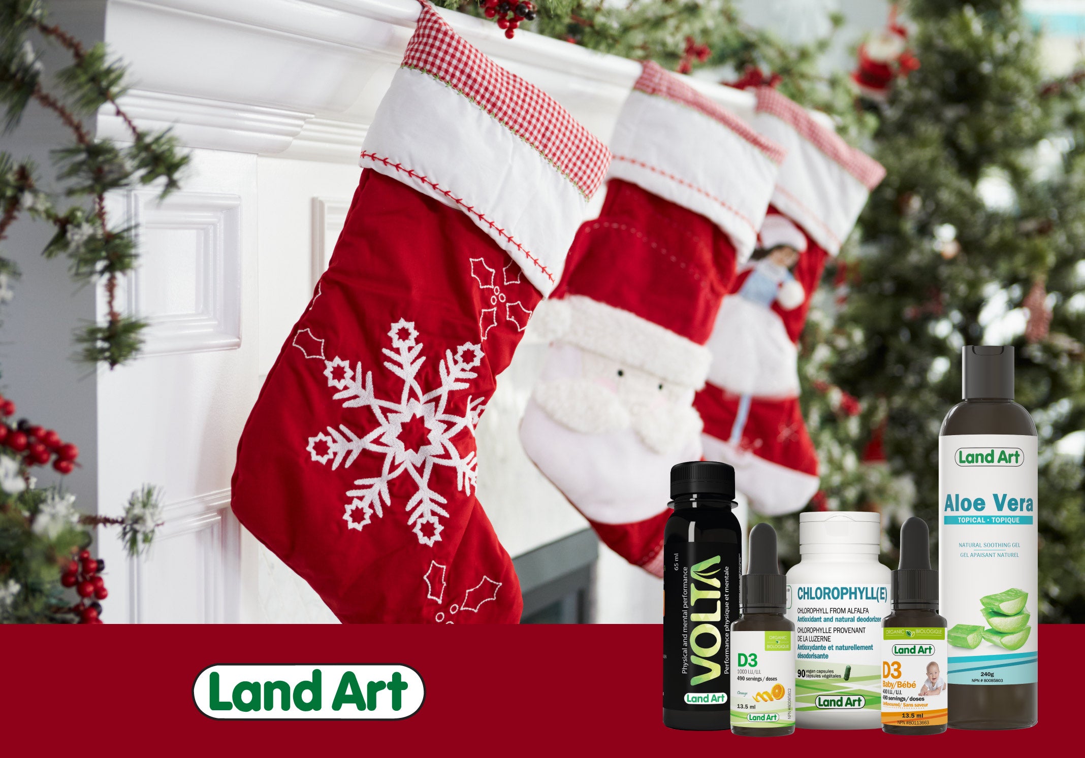 Land Art offre de nombreux suppléments de petites dimensions qui sont parfaits à glisser dans les bas de Noël de toute la famille pour une surprise remplie de bienfaits et de santé.