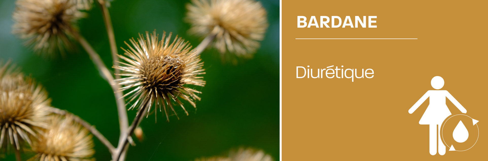 Plante reconnue de plusieurs par ses boutons qui collent comme des velcros, cette plante est traditionnellement utilisée en phytothérapie comme diurétique, pour stimuler la sudation et pour aider à éliminer les toxines par les reins, la peau et les muqueuses.
