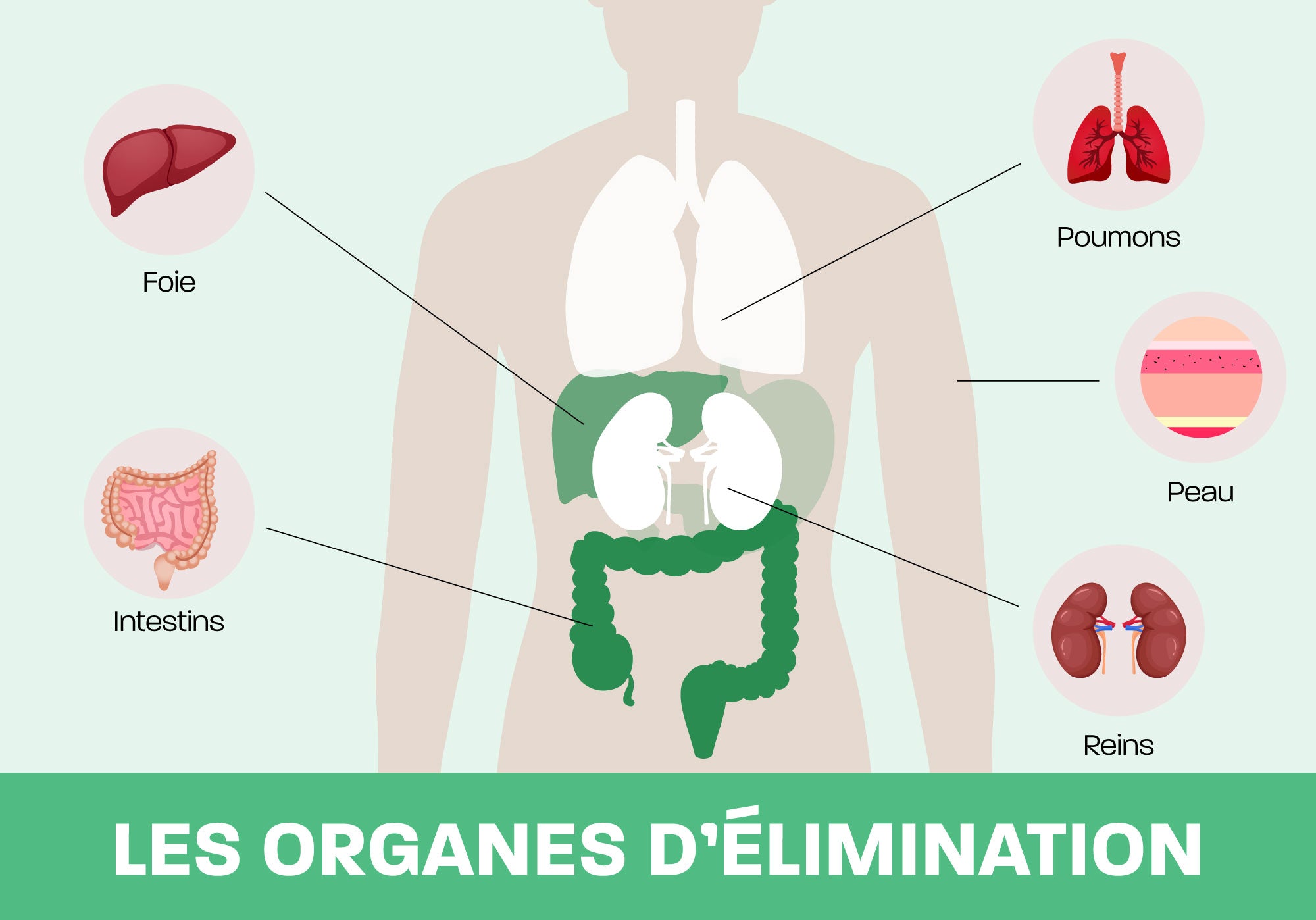 Le foie, les reins, les intestins, la peau et les poumons sont les principaux organes adaptés à éliminer certaines substances nuisibles.
