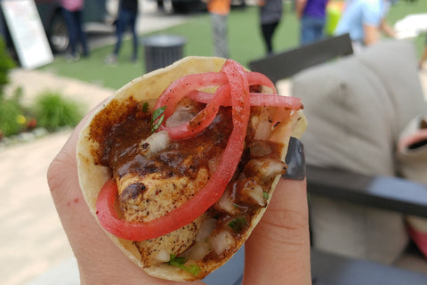 Petit arrêt dans le quartier le plus en vogue de Salt Lake City, The Gateway, et hop! je vois un food truck qui offre des tacos au tofu végétaliens et sans gluten!