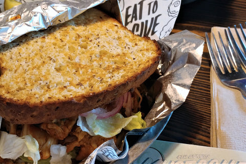 Super sandwich au jacquier. Pour chaque sandwich vendu, Even Stevens offre un sandwich à une banque alimentaire. Génial!
